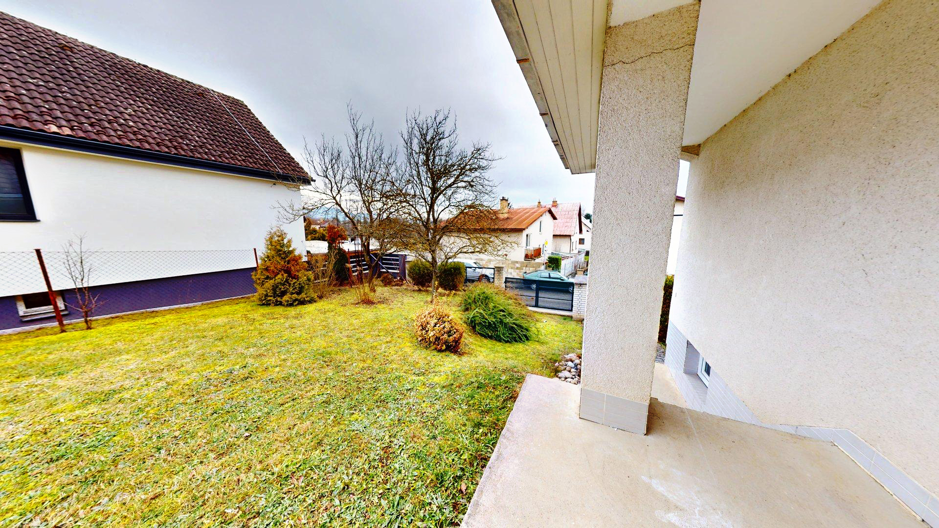 Veľkým plusom je pivnica, ktorá rieši skladovanie a technické zázemie. K tomu je tu veľká garáž (s priamym vstupom do domu cez pivnicu), takže sa viete pohodlne dostať dovnútra aj s nákupom alebo v zlom počasí. Bonusom je krytá veranda – miesto na kávu, posedenie alebo praktický prechodový priestor do domu.